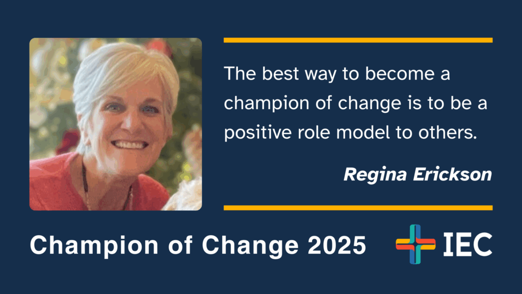 Please join us in congratulating Regina Erickson, our IEC Champion of Change 2025, for her invaluable contributions and dedication to ensuring everyone has the respectful, person-centered care they deserve.